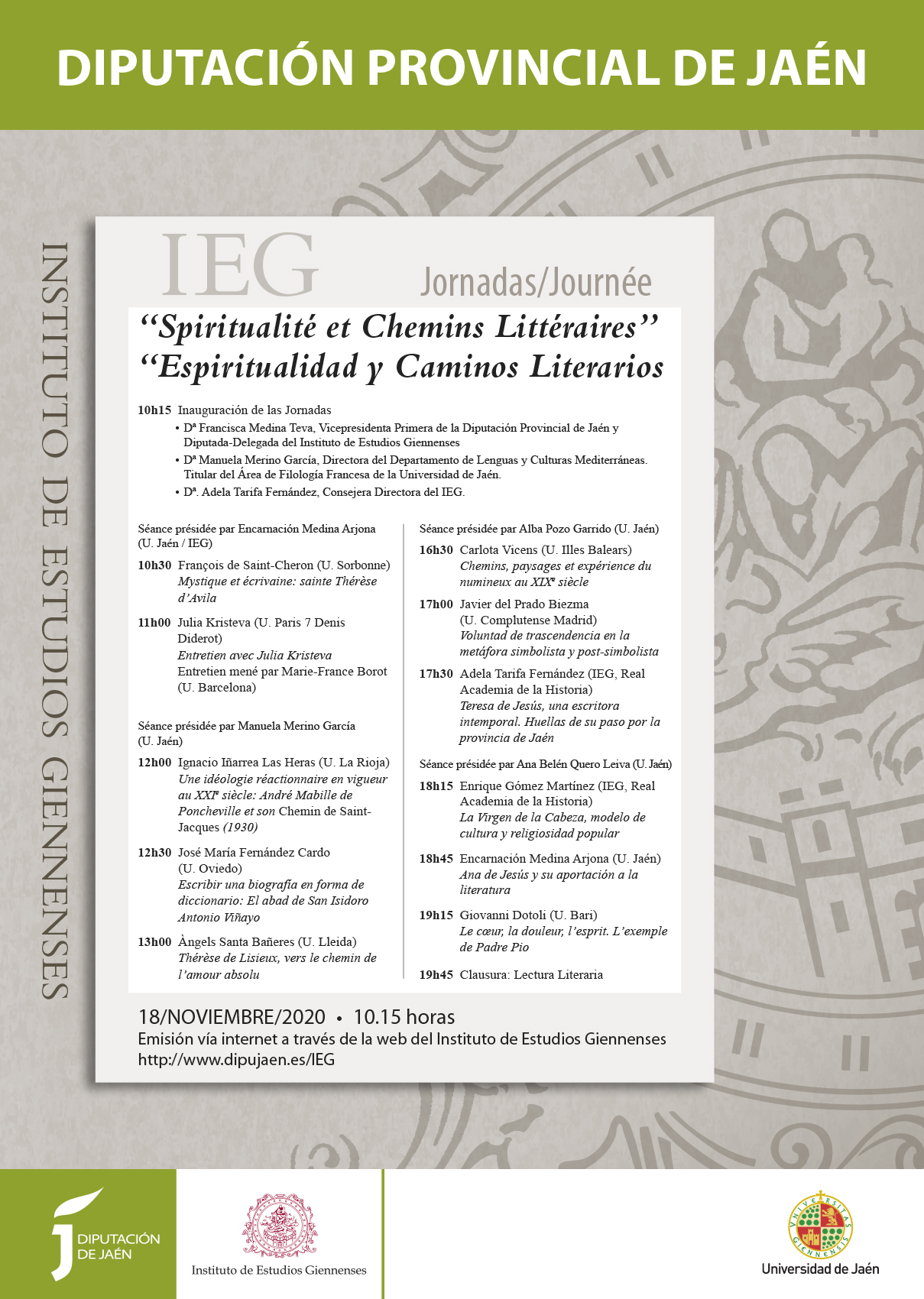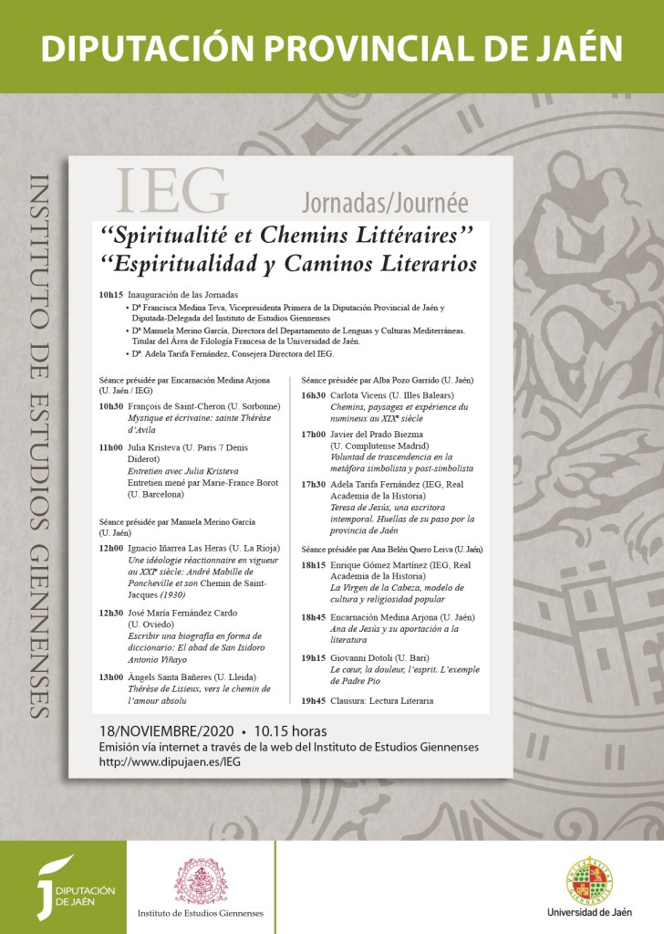 Programa Jornada ESPIRITUALIDAD Y CAMINOS LITERARIOS (18 noviembre 2020) 14 sábado Nov 2020 Posted by Encarnación Medina Arjona in Jornadas ≈ Deja un comentario Relacionado