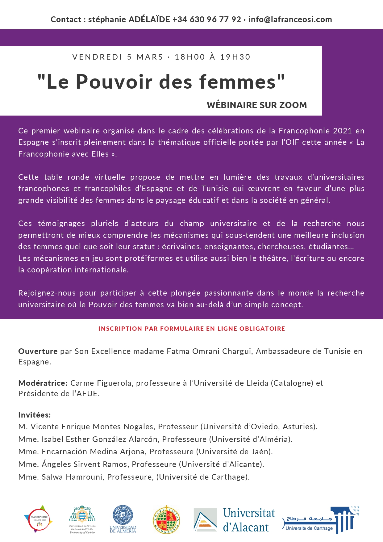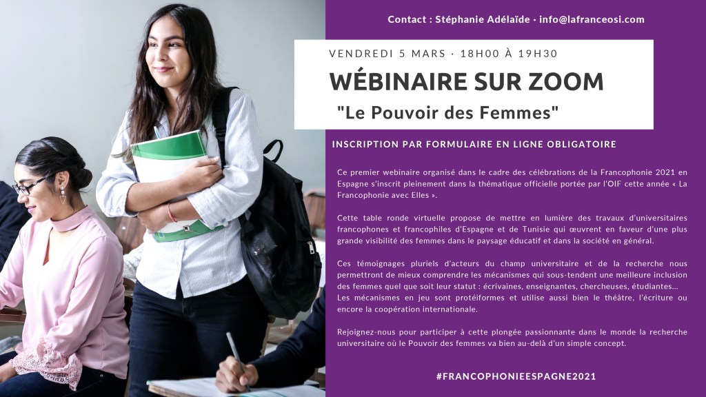 LE POUVOIR DES FEMMES (Inscription: https://www.institutfrancais.es/evento/le-pouvoir-des-femmes/) 24 miércoles Feb 2021 Posted by Encarnación Medina Arjona in Jornadas ≈ Deja un comentario Relacionado